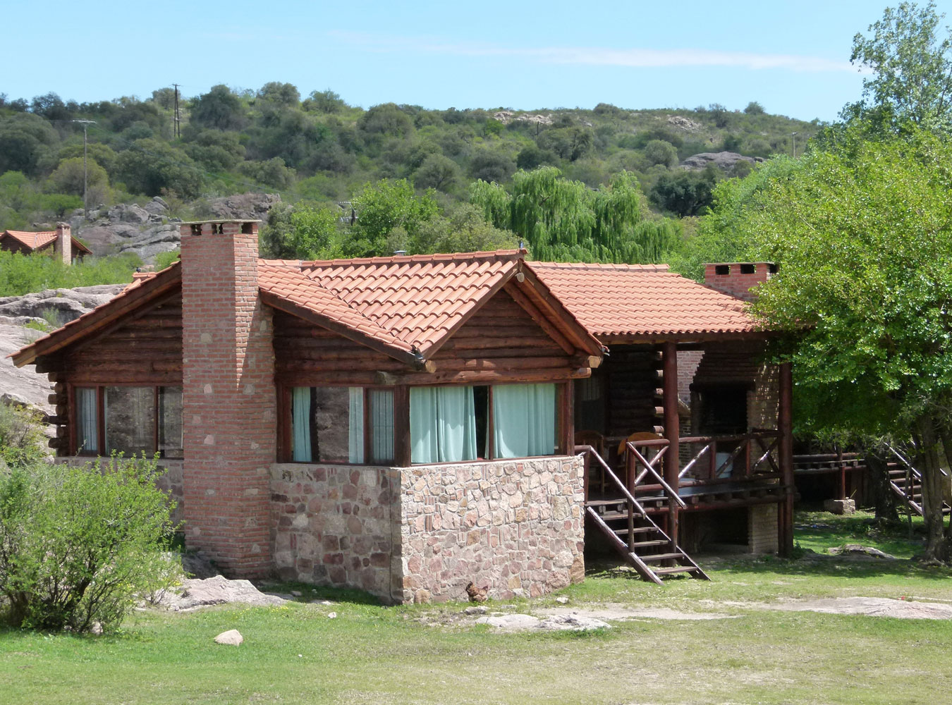 Tienen capacidad para 5 personas. Cuentan con dos dormitorios. El dormitorio principal con cama matrimonial y otro con 3 camas. Baño completo, living –comedor ( aire acondicionado ), cocina americana completa ( y microondas ), galería con parrilla individual y cochera.